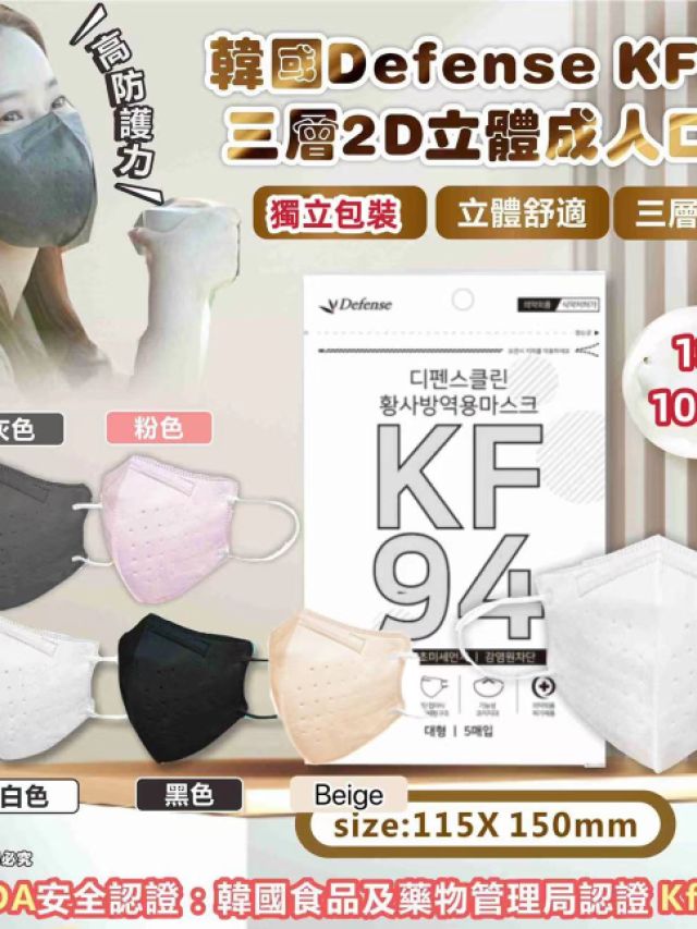 Defense KF94 三層2D立體成人口罩(100個獨立包裝)